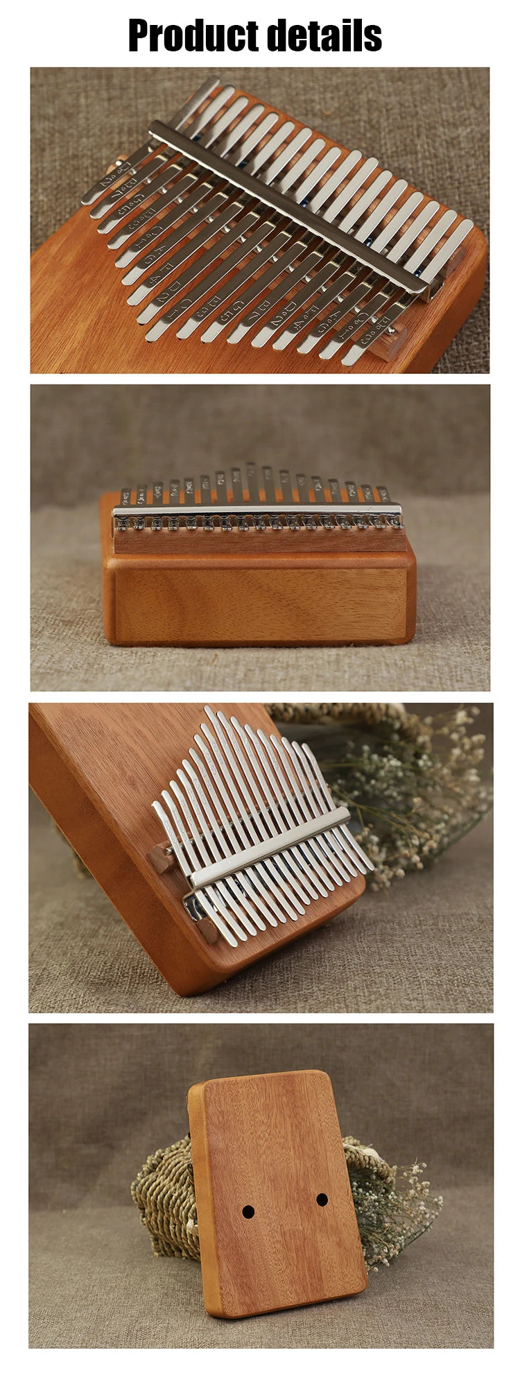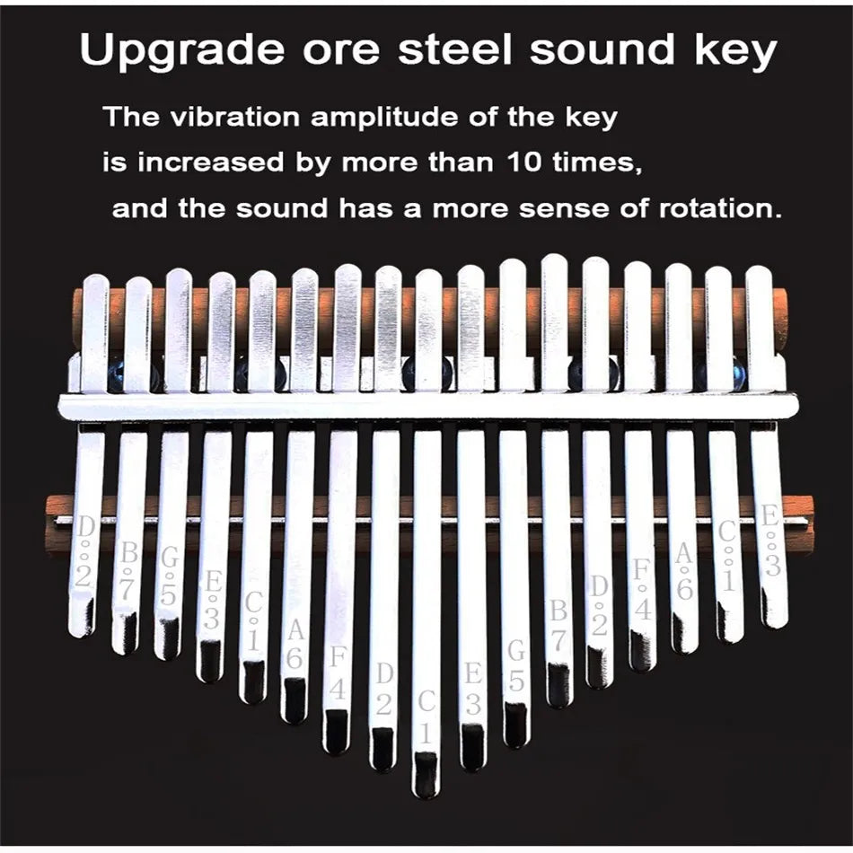 צליל צלול ושמיימי: עשוי מתכת, מותקן על קופסה מעץ Acacia koa האפריקני. הטון המוזיקלי המתמשך נשמע יפה בכל שניה שעוברת.