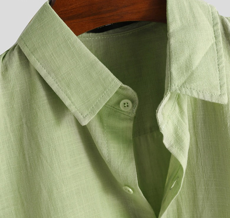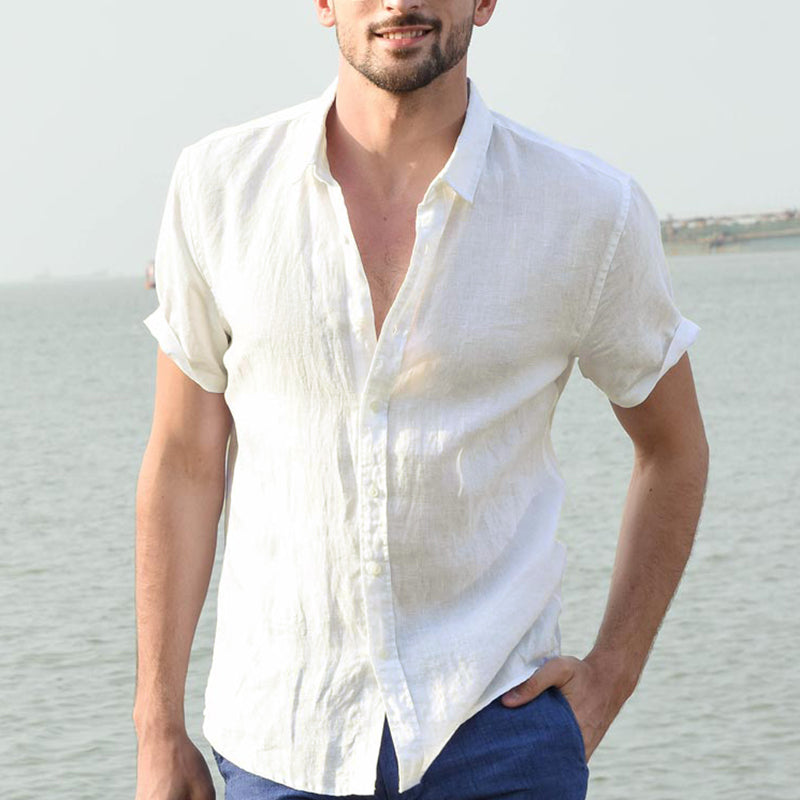 חולצה מכופתרת קיצית חלקה בגזרת Slim fit, עם צווארון בינוני ונעים למגע ושרוולים קצרים.