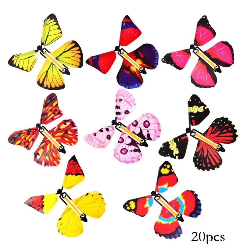 הפרפרים מגיעים באריזות של 10 או 20, ועשויים מחומר באיכות גבוהה וידידותי לסביבה. גוף הפרפר עשוי ABS, קטן וגמיש. יש לסובב את הגומייה בכיוון השעון או נגד כיוון השעון, והפרפר יעוף בחופשיות. בסיבובים שונים - הפרפרים יעופו לכיוונים שונים.