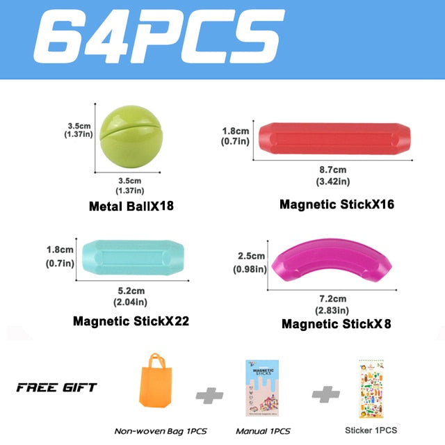- עיצוב מיוחד, קל לשחק: מגיע עם 64 חלקים מגנטיים במגוון צורות ומספקים לילדים אפשרות אינסופית ליצור דגמים שונים. הם יכולים לבנות מודלים דו-מימדיים ותלת-מימדיים רבים לפי הדמיון שלהם.