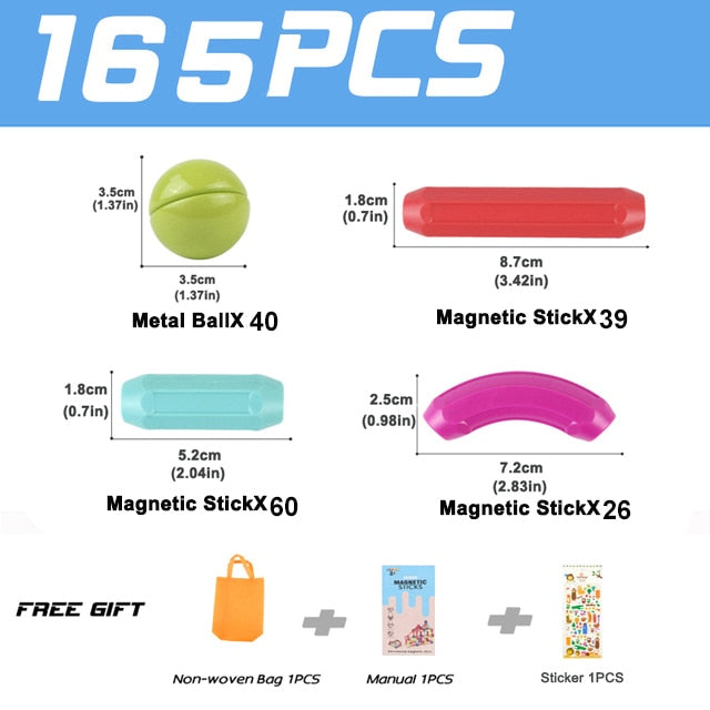 ערכה חינוכית לבנייה ממגנטים אשר מעניקה לילדיכם את החוויה שהם צריכים. החל מ-18 ועד 172 מגנטים במגוון צורות, ילדיכם יוכלו לבחור בין מגנטים קעורים לישרים באורכים שונים, תוך פיתוח היצירתיות שלהם ולתכנן עיצובים מורכבים, אשר יחד עם הצבעים הבוהקים, יציתו את הדמיון ויתנו נופך אמנותי לכל יצירה.