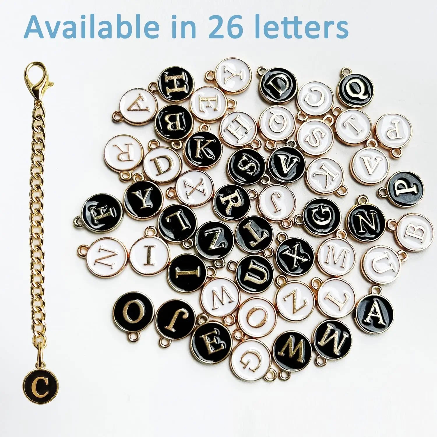 כל אות מגיעה עם 2 צ'ארמים - רקע לבן ושחור.