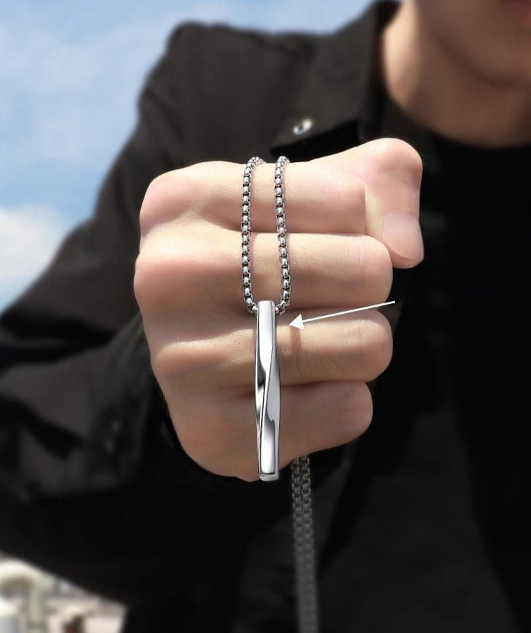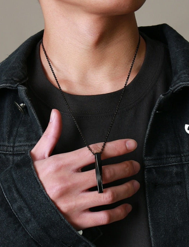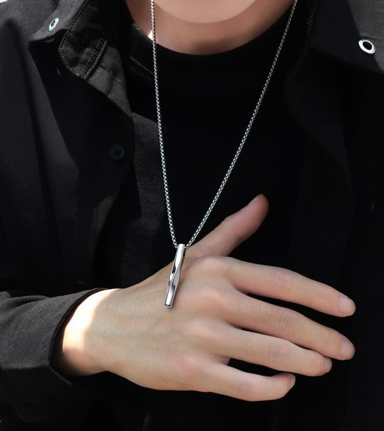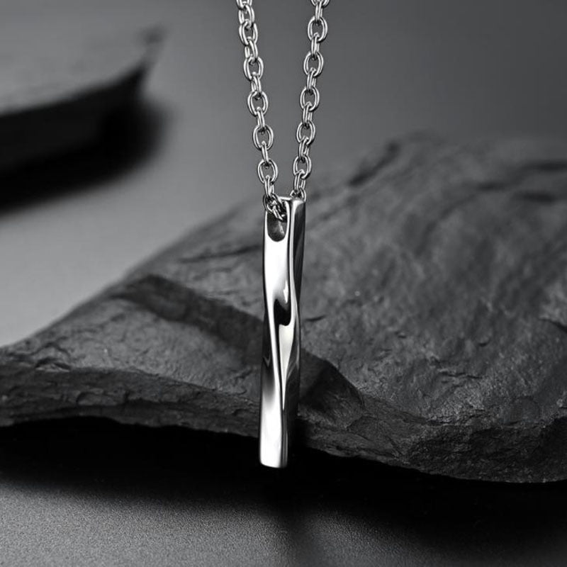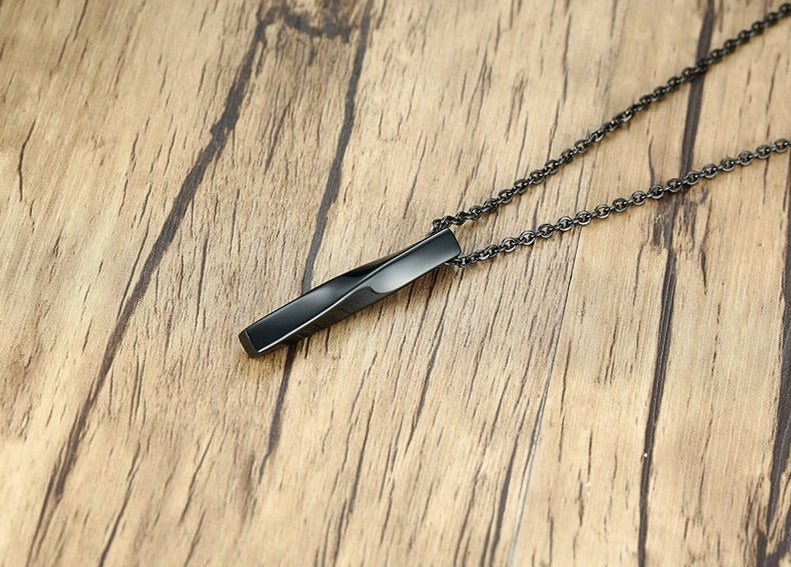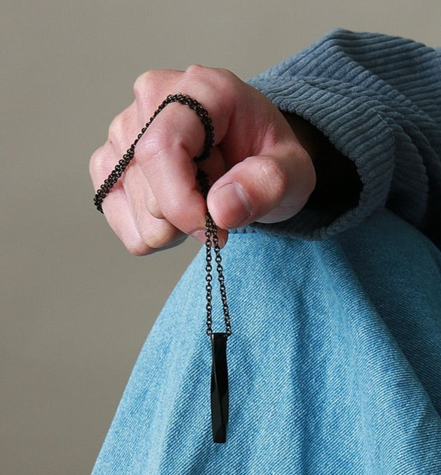 השרשרת מציגה תליון אובליסק מלוטש בעדינות עם טוויסט משגע בצורת מלבן מעוות ומהפנט.