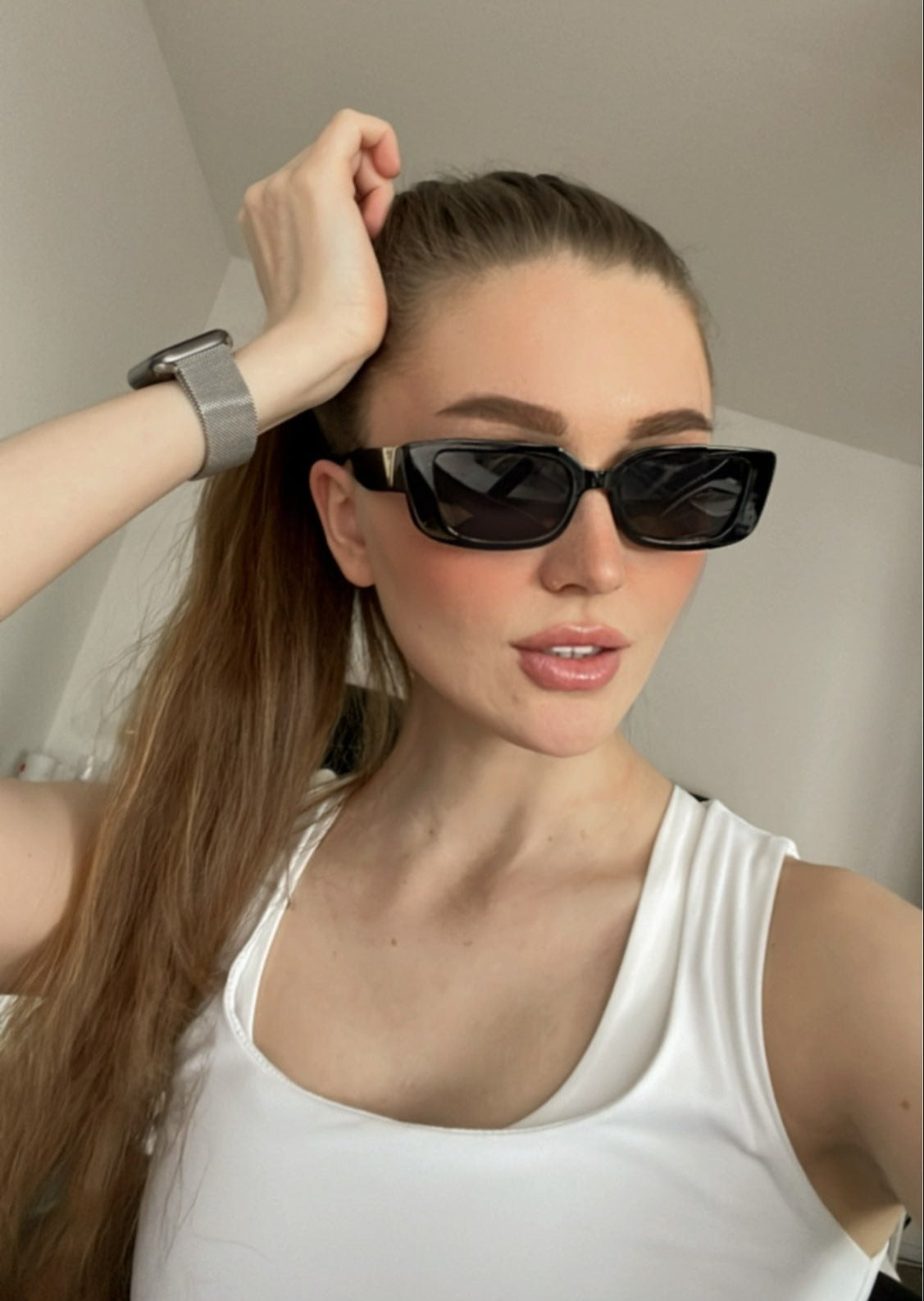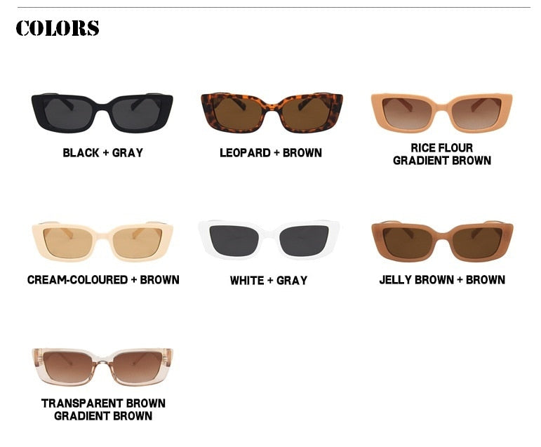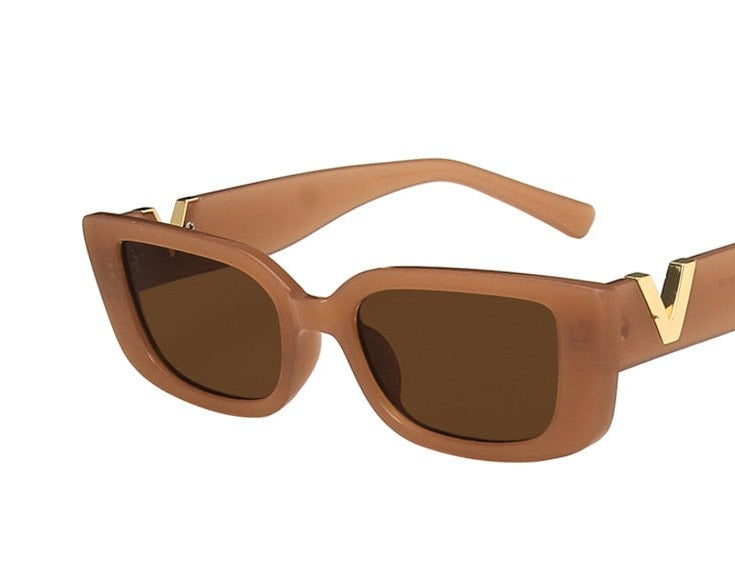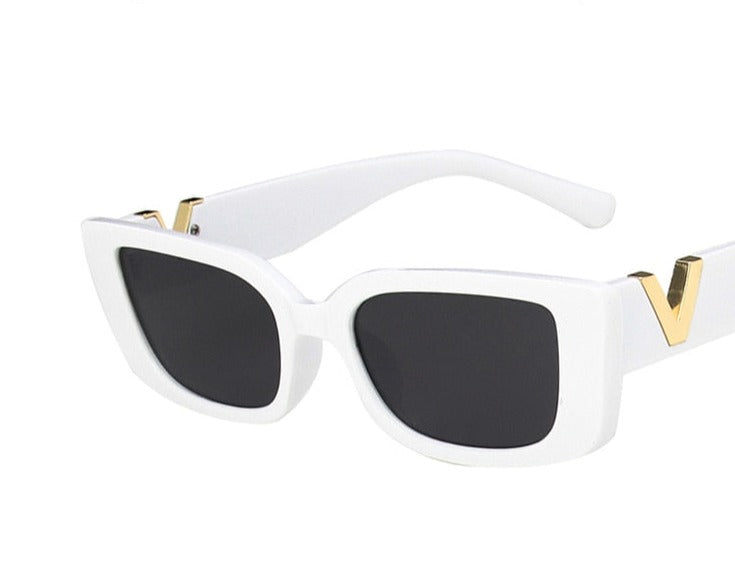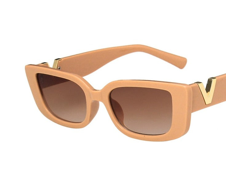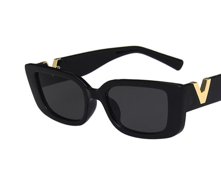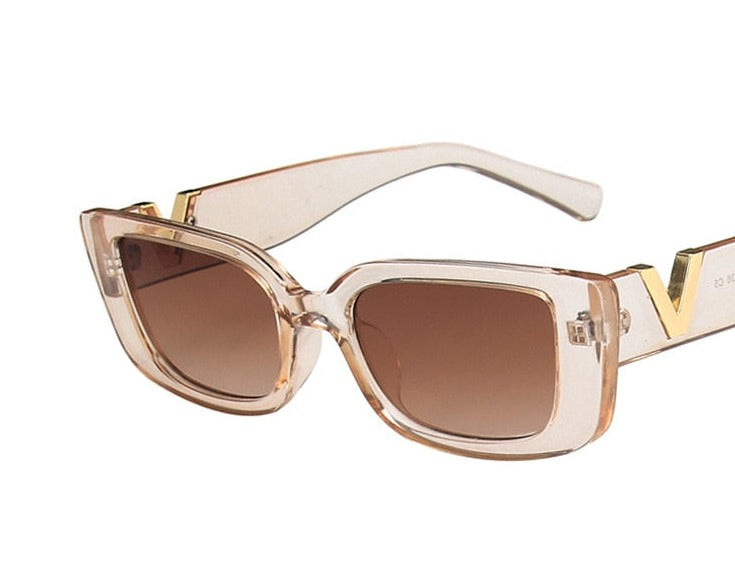 משקפי שמש וינטג' בעלת מסגרת אלגנטית, עיצוב מלבני אופנתי ועדשות כהות בגרדיאנט משתנה.